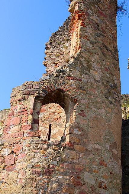 Wahrscheinlich ist dieser Teil der Bastion, dessen Baufugen am Flankenende gut auszumachen sind, als erster entstanden. Auf der Westseite, die leider die stärksten Schäden aufweist, kann man noch die Spuren einer horizontalen Gliederung der Mauerflächen durch einen ausfragenden gerundeten Gesimsstreifen erkennen.