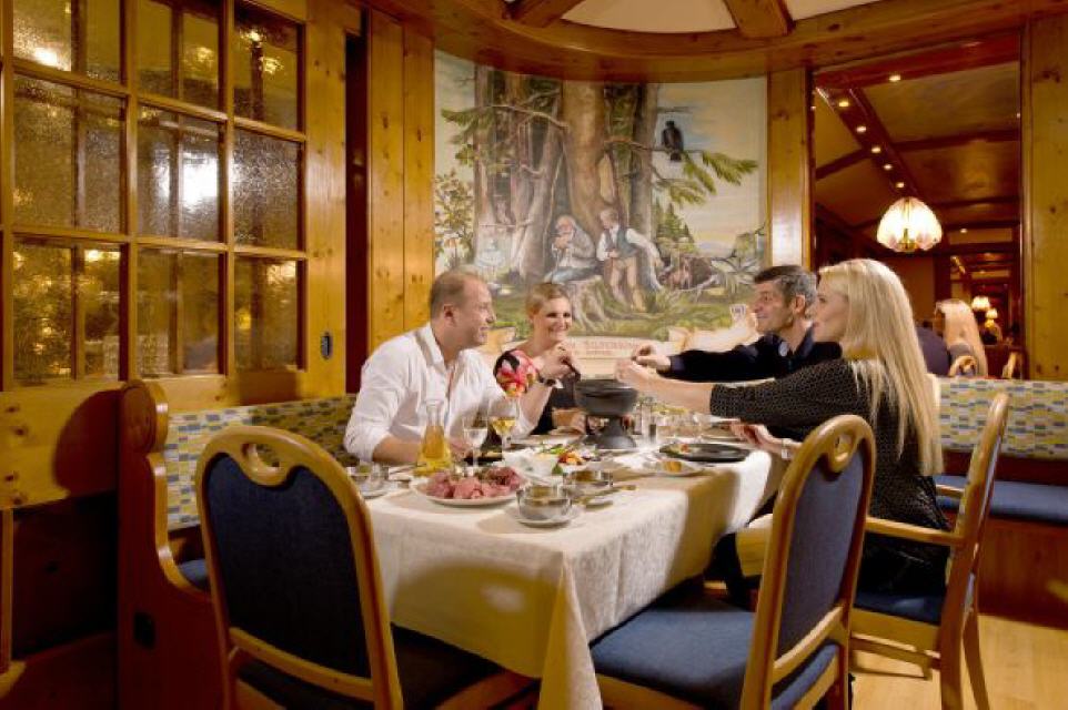 St. Georg Stube. Unser stilvolles á la carte Restaurant “St. Georgs Stube” wurde nach dem Hl. St. Georg, dem Bleibacher Schutzpatron, benannt. Die Heiligenfigur im Restaurant ist eine Leihgabe der Kirchengemeinde und stand lange Jahre in unserem Gotteshaus. Die Wandbilder aus der Sage vom Silberkönig stammen von dem Bleibacher Künstler Hans Schätzle. Der Raum bietet Platz für 50 Personen.