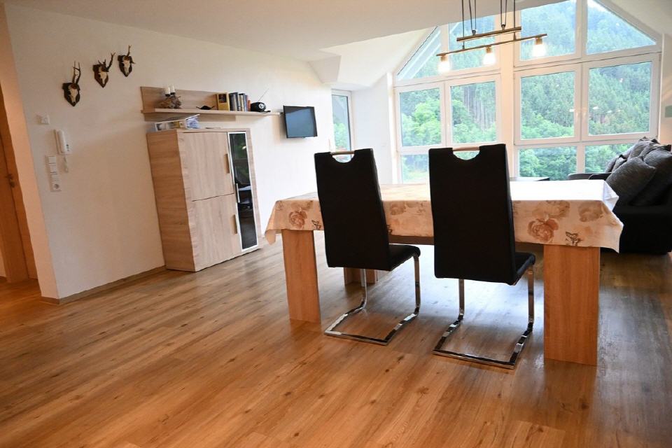 Sie wohnen in hellen, modernen und liebevoll eingerichteten Ferienwohnungen ( ca. 100 qm) mit 2 Schlafzimmern, große Dusche, Eckbadewanne, WC, Wohnraum mit TV und Sofalandschaft, voll eingerichteter Küche, extra WC, Abstellraum, Südbalkon mit Balkonmöbeln und einem einzigartigem Panoramablick.