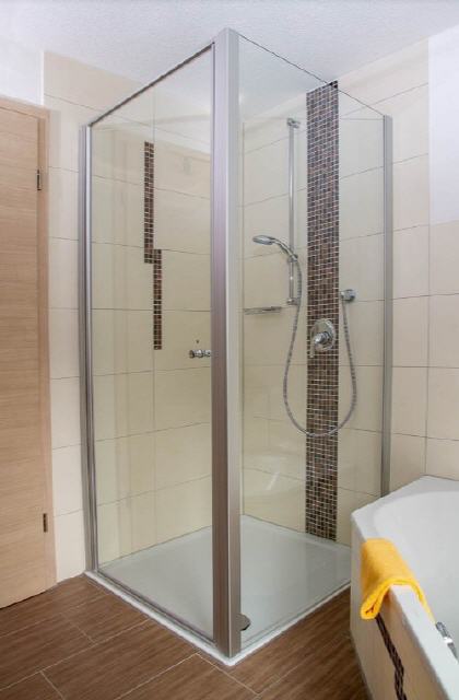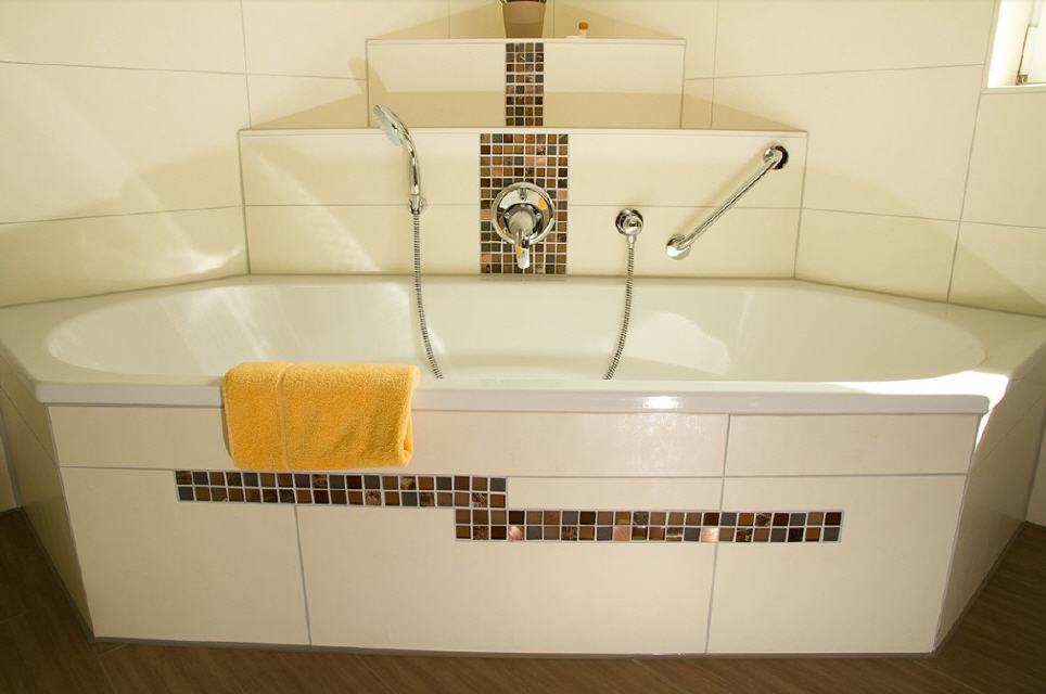 - Wohlfühlbad mit Eckbadewanne, große Dusche, WC, Waschbecken