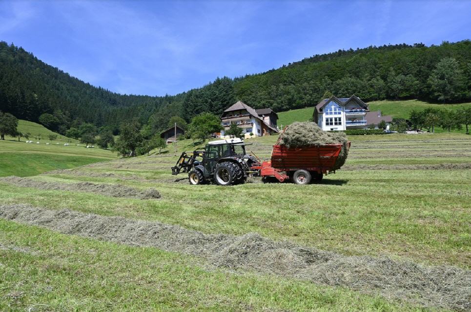 Im Sommer bei der Heuernte, oder im Winter bei der Stallarbeit.