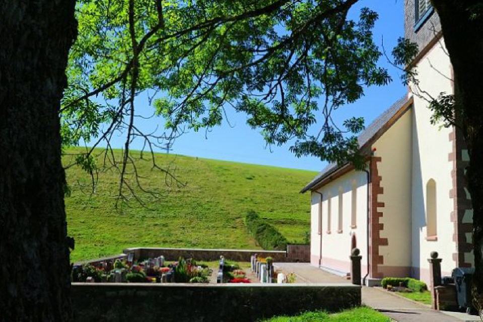 Matthias Faller wurde auf eigenen Wunsch nach seinem Tod außen an der Marienkapelle des Klosters St. Märgen beigesetzt.