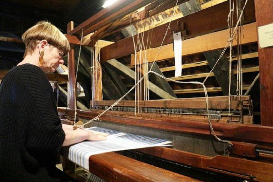 Am Ausgang zum Strohflechtzimmer sehen Sie einen Quecksilberbarometer (Wetterglas), auf dem der Bauer das Wetter für den folgenden Tag ablesen konnte. An der Türe hängt der sogenannte “Türhuddel”. In der kalten Jahreszeit spielte sich die tägliche Körperhygiene der ganzen Familie in der warmen Stube ab. Die Tücher zum Abtrocknen (Huddel) wurden nach Gebrauch zum Trocknen an der Türe aufgehängt und mit einem Übertuch, das mit besonders schön gestickten Sprüchen, vorwiegend religiösen Inhalts verziert war, überdeckt.