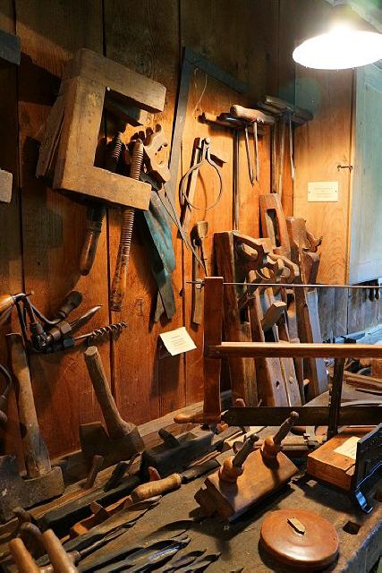 In der Tenne sind bäuerliche Gerätschaften sowie zwei Handwebstühle, eine Uhrenschildermalerei, Küfer- und Schlosserwerkstatt. Eine Schuhmacherwerkstatt , die Strohflechterei, das Hafnerhandwerk, Schindelmachen, Korbflechten, „Diechelebohren“ (Herstellung hölzener Wasserleitungsrohre) runden alles ab.