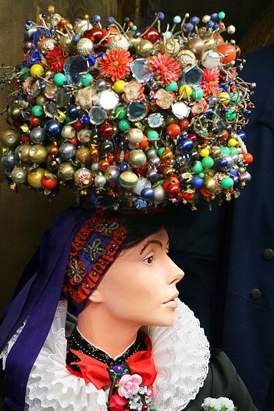 So wurde den “Gemeinen Bauersleuth” (de Gwehnliche) vorgeschrieben, daß sie nur Stoffe aus Flachs (Riesternes) und Schafwolle tragen durften, für deren Herstellung jeder selbst zu sorgen hatte. Zunächst wurden die Stoffe in ihren natürlichen Farben getragen (rohweiß, grau oder braun). Erst später, als in der höfischen Mode die aus Spanien eingeführte schwarze Farbe populär wurde, durften auch die einfachen Leute ihre Stoffe färben. Bei unserer Tracht hat sich dieses Schwarz bis heute erhalten. Es galt schon immer als vornehm und feierlich.