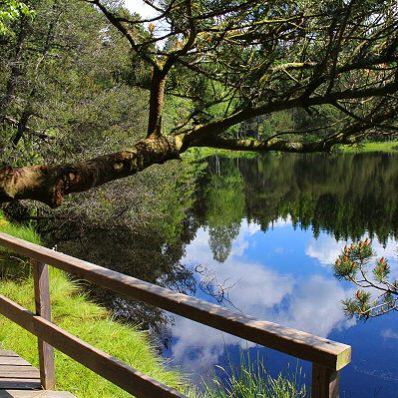 Überall wachsen Torfmoose, dicke Polster, die wie Schwämme mit Wasser vollgesogen sind. Weich ist sein Moorwasser. Auch gibt dieses Hochmoorgebiet wunderschöne Wintermotive ab. Reif, Eis und Schnee verwandeln die bizarren Gehölzgruppen in märchenhafte Naturgestalten. Eine geradezu magische Naturschönheit ist der See, wenn Nebel über ihn zieht. Einzigartiger Zauber, wenn die Nebelschwaden wie ein Seidenschleier über dem See hängen.