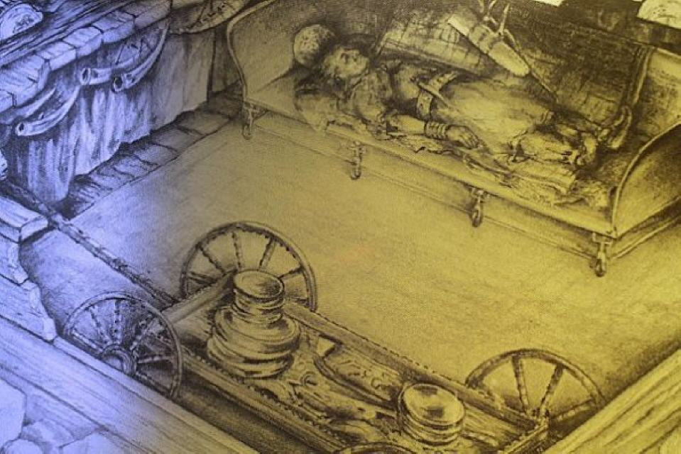 Bis zu diesem Zeitpunkt waren schon Wochen vergangen. Erst dann fand die Bestattung des toten Fürsten statt. Von Süden führte zur Grabkammer hin ein mit dicken Balken gesäumter Weg: er war ungefähr 20 m lang. Über diesen Weg schritten die Männer, die ihren Anführer auf einer Bahre aus Fichtenholz trugen. Der Keltenfürst war in seiner besten Tracht gekleidet, dazu gehörten auch seine persönlichen Waffen. In die Grabkammer legten die Kelten noch reichlich Gaben für das ungetrübte Leben ihres Fürsten nach dem Tode. Dann schlossen sie die Kammer.