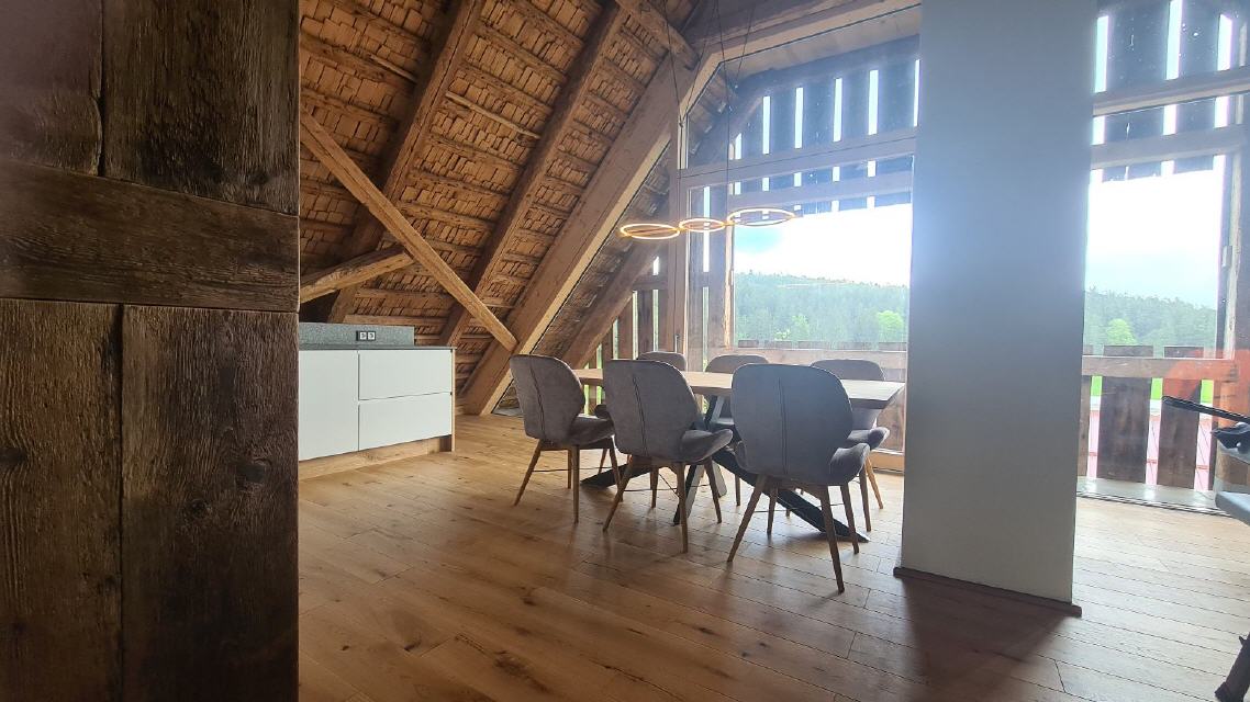 Das im Jahr 2024 fertig gestellten Apartment Hiesle finden bis zu 6 Personen über 2 Etagen Platz. Der offen gestaltete Wohn- und Essbereich mit BLick über das Schwarzwaldtal lädt zu geselligen Stunden oder zu ruhigen Momenten unter dem historischen Schindeldach ein.