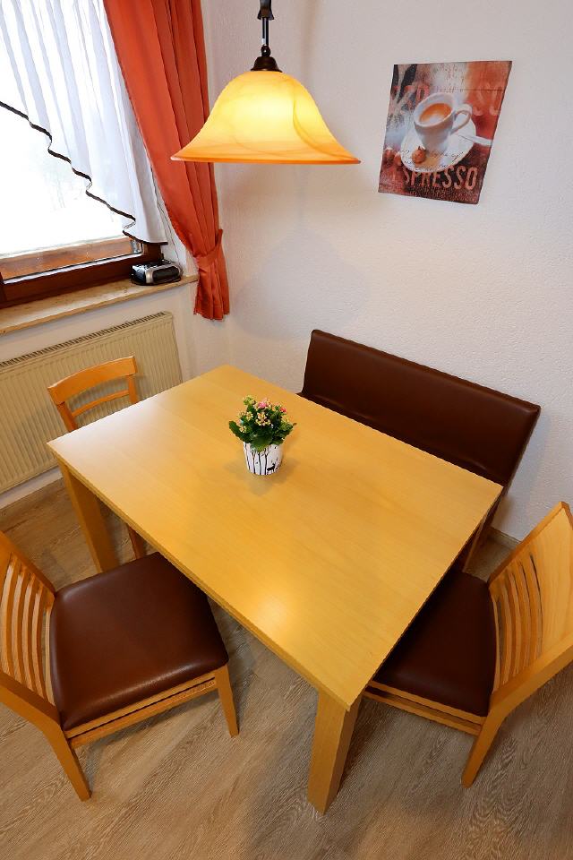 Hier können Sie schon beim Frühstück die Sonne genießen, die morgens auf den großen Balkon scheint. Am nahen Waldrand finden Sie Entspannung und Erholung. Möchten Sie spannende Ausflüge und Tagestouren unternehmen, ist eine gute Verkehrsanbindung vorhanden. Fahrrad- und Wanderwege sowie ein Skilift mit Rodelhang sind in nächster Umgebung.