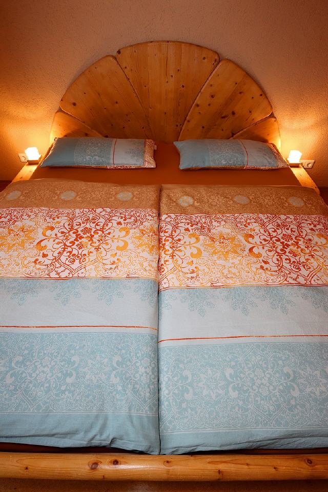 - Schlafzimmer: Doppelbett 200 x 200 cm, Kleiderschrank, Kofferablage, Korbstuhl, Nachtleuchten, Betten sind bezogen