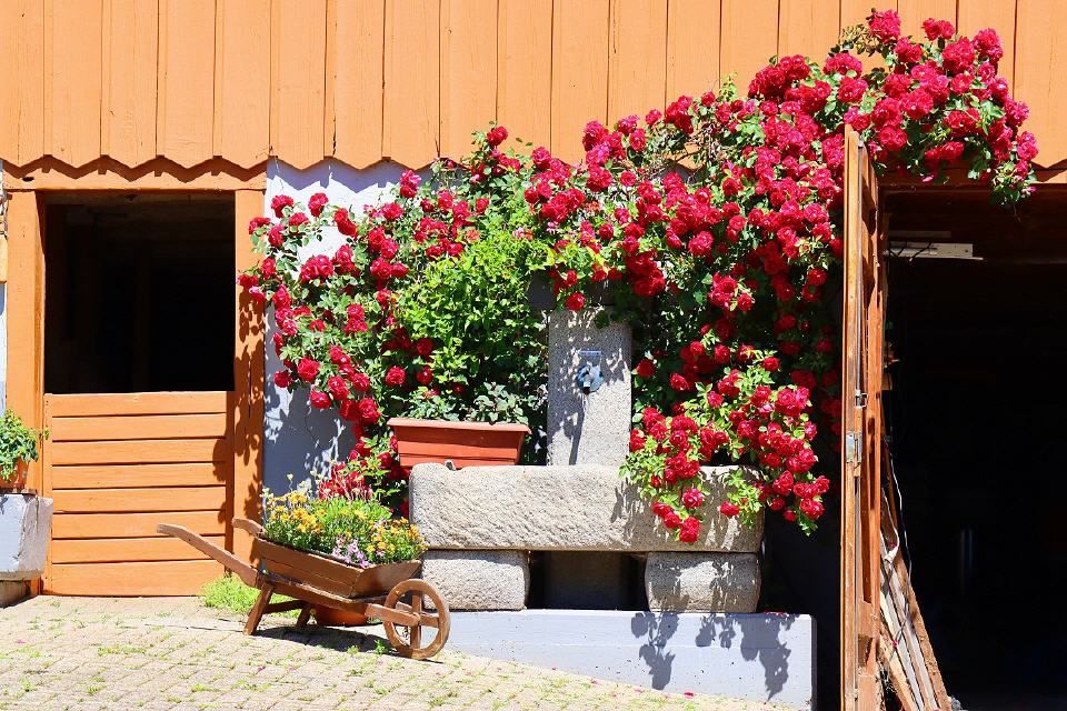 Doch wie lässt sich ein Dorf, das durch seine natürliche Schönheit, bedingt durch Lage und liebevolle Pflege, noch verschönern? Natürlich durch die Königin der Blumen – die Rose. Zu diesem Anlaß wurden von zahlreichen Baumschulen und Rosenzüchtern insgesamt 30.000 Rosen gestiftet, die nun das Dorfbild zusätzlich verschönern dürfen.