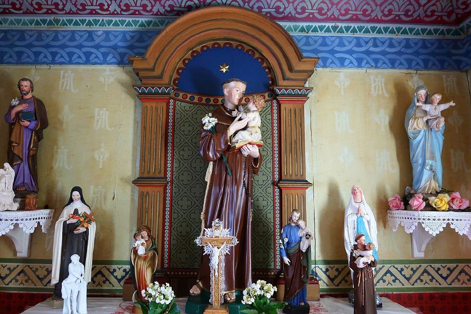 Antonius von Padua (1195 bis 1231) war ein Ordensbruder des Hl. Franziskus und im Volk bekannt und beliebt. Dargestellt wird er im Ordensgewand der Franziskaner, das Jesuskind auf seinem Arm. Er wird als "Schlampertoni" verehrt, weil er hilft, Verlorenes wieder zu finden. Auch steht er heiratslustigen Mädchen als Vermittler bei der Suche nach einem geeigneten Bräutigam zur Seite. Außerdem ist er Schutzpatron der Armen, der Sozialarbeiter, der Bäcker, Bergleute, Schweinehirten, Reisenden, der Pferde und Esel...