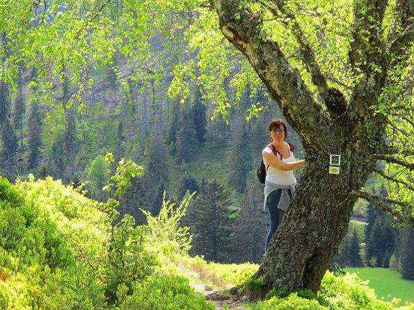 Beginnend am Mösle-Parkplatz (880 m) geht es, nachdem wir die Menzenschwander Alb überquert haben, kurz durchs Hinterdorf, vorbei an typischen Schwarzwaldhöfen. Am Schwarzbergweg biegen wir links ab und gehen das Asphaltsträßchen bis zum Ende bergauf. Nun folgen wir einem schmalen Pfad. Auf halber Talhöhe folgen wir dem Wildapfelpfad. Nach wenigen Metern sehen wir im Westen ins Krunkelbachtal und in der Ferne das Herzogenhorn (1415 m). Die höchste Erhebung im Landkreis Waldshut. Denn dieser Zipfel am Feldbergmassiv gehört politisch zum Landkreis am Hochrhein. Gleich oberhalb beginnt der Breisgau-Hochschwarzwald.