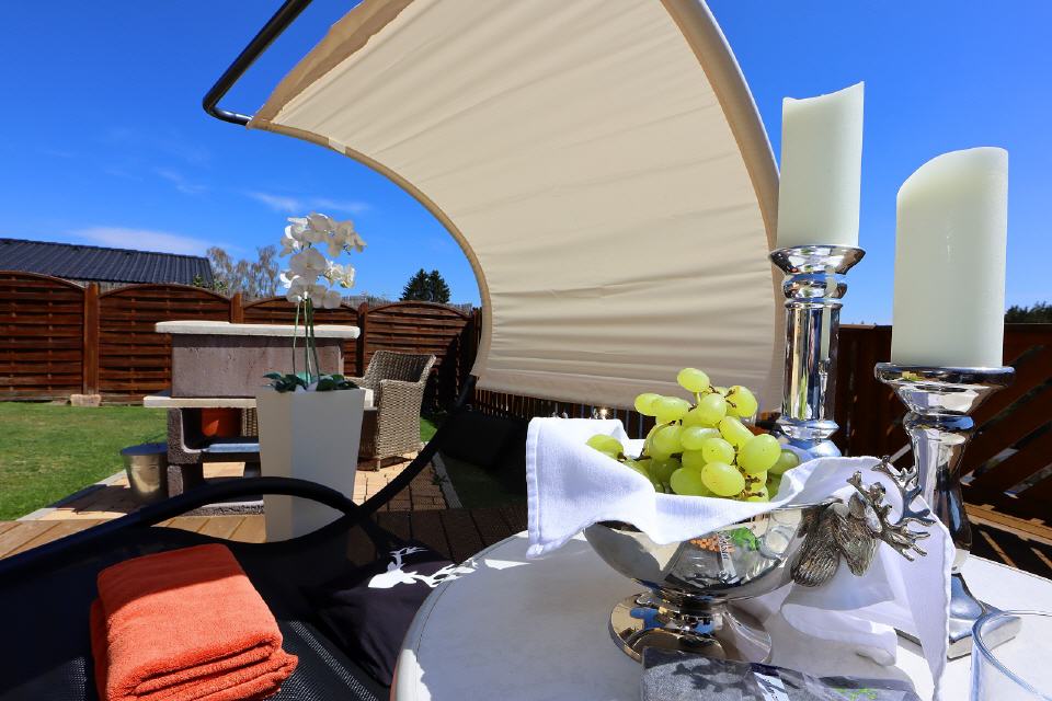 Das Sonnenhüsli ist ein besonders reizvolles, eingeschossiges Ferienhaus zwischen Titisee und Schluchsee im Schwarzwaldort Lenzkirch (Ruhbühl) gelegen. Das auf 900 Höhenmeter gelegene Ferienhaus ist liebevoll ausgestattet. Viele Details tragen zum besonderen Ambiente des Hauses bei. Antiquitäten, schöne Spiegel und Bilder wurden geschmackvoll arrangiert. Die angenehme Beleuchtung trägt für ein besonderes Raumklima bei. Der im Garten befindliche Whirlpool ist das ganze Jahr auf 36 Grad beheizt. Auch befindet sich auf dem Grundstück eine Wellnesshütte sowie eine Fassauna, so dass schlechtes Wetter keine Chance hat. Hunde sind bei uns herzlich willkommen, da Sie sich in dem auf 1,80 m uneinsehbaren, eingezäunten Grundstück austoben und Frauchen und Herrchen nach Herzenslust entspannen können.