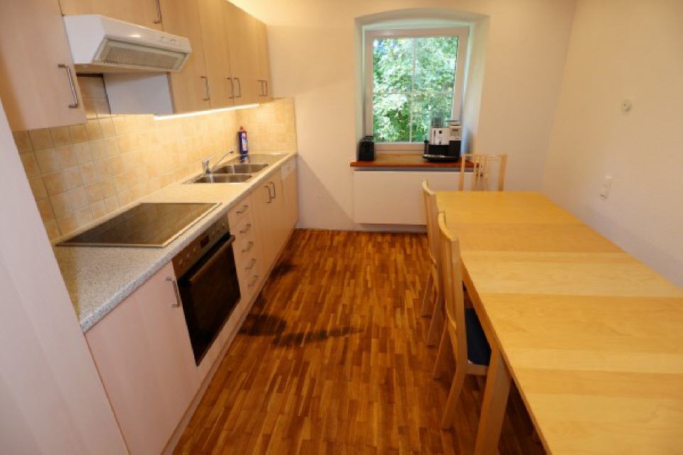 - gut ausgestattete Wohnküche mit großem Esstisch