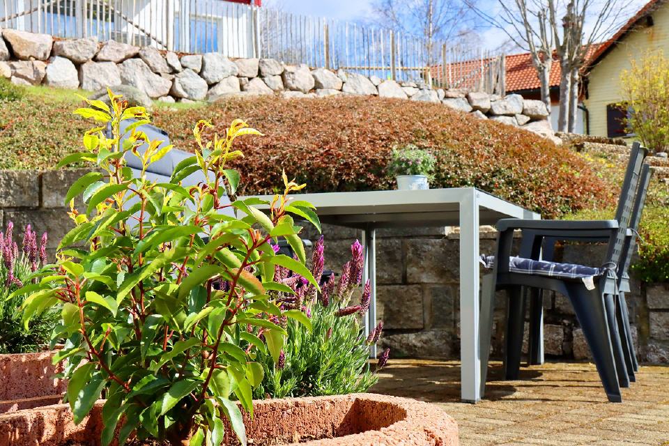 • Außensitzplatz, Tisch, 4 Stühle, Weber-Holzkohle-Grill