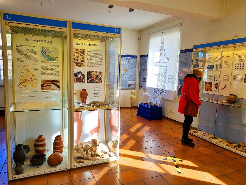 Die spätlatènezeitliche Handwerker- und Händlersiedlung von Breisach-Hochstetten bietet ein umfangreiches Fundmaterial. Nach den römischen, merowinger- und karolingerzeitlichen Siedlungsfunden führt der Rundgang zur frühen Münzprägung im 10. Jahrhundert sowie zu den umfassend dargestellten mittelalterlichen Siedlungsresten auf dem Münsterberg. Hier ist besonders der umfangreiche Glasbestand aus dem 13. / 14. Jahrhundert hervorzuheben. Die Lebensweise der Bewohner wird durch das Modell eines Grubenhauses, das wohl handwerklichen Zwecken diente, veranschaulicht.