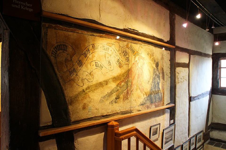 Bemerkenswert sind die restaurierten Reste spätgotischer Wandmalerei im Inneren.