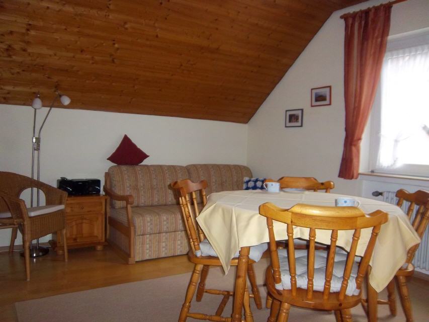 Wohn- Esszimmer mit zum Doppelbett ausziehbarer Couch