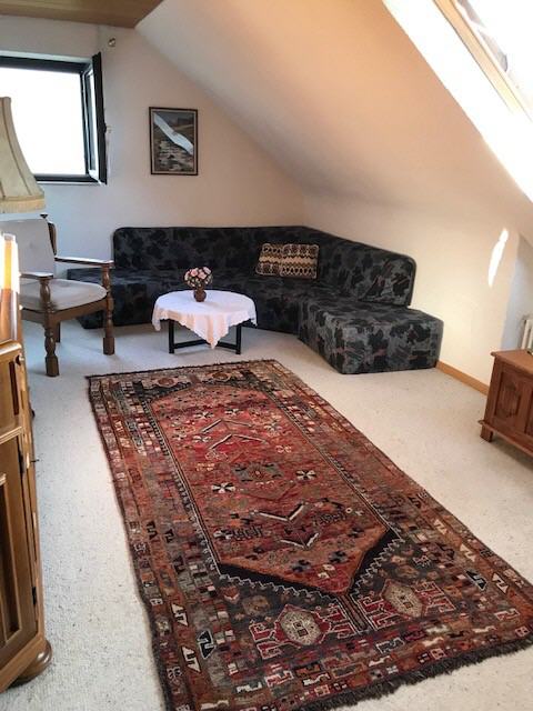 Die Ferienwohnung verfügt über ein großes, gemütlich eingerichtetes Wohnzimmer mit Sat-TV und Radio, einem bequemen, großen Sofa, das als zusätzlicher Schlafplatz für zwei Personen genutzt werden kann (2×2 m).
