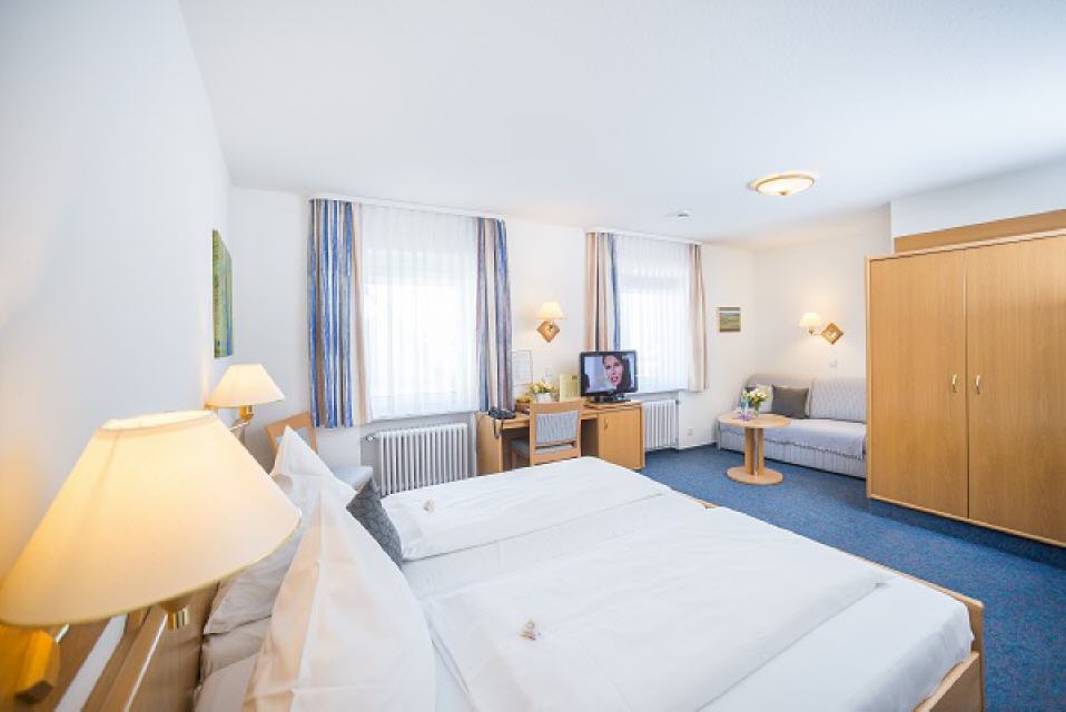 Unsere behaglichen Komfortzimmer haben Sitzecke, Sat-TV und Balkon – Erholung pur für die Seele!