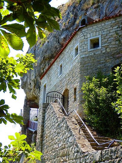 Unmittelbar in eine Felsnische gebaut ist an der jäh aufsteigenden Wand die schon von weitem erkennbare St. Veitskapelle zu sehen. Unterhalb liegt der Friedhof des einstigen Fischerdorfes Istein, heute ein Ortsteil von Efringen-Kirchen. Zu sehen sind aber nur noch die Überreste des kleinen Kirchleins, das bereits im Mittelalter bestand. Sie soll ursprünglich eine von zwei Kapellen der Klotzveste gewesen sein. Nach der Zerstörung der Burg wurde sie 1650 wieder aufgebaut; seit der Sprengung der Befestigungsanlagen 1947 liegt sie in Trümmern. Aufgrund einer Bürgerinitiative in den 1980-er Jahren wurde sie in großen Teilen wieder aufgebaut.