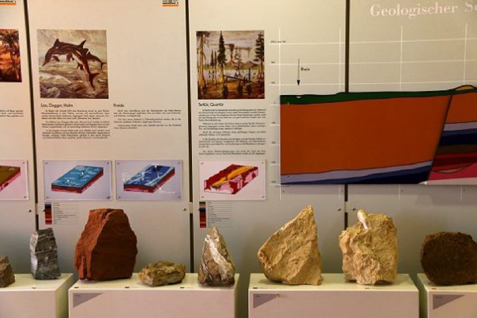 Erdgeschoss: Geologie & Archäologie. Das Museum informiert anschaulich über die Entstehung der heutigen Landschaft am südlichen Oberrhein und präsentiert beeindruckende Fundstücke aus der Jahrtausende zurückreichenden Besiedlung bis hin zur keltischen, römischen, alamaniischen und fränkischen Zeit.