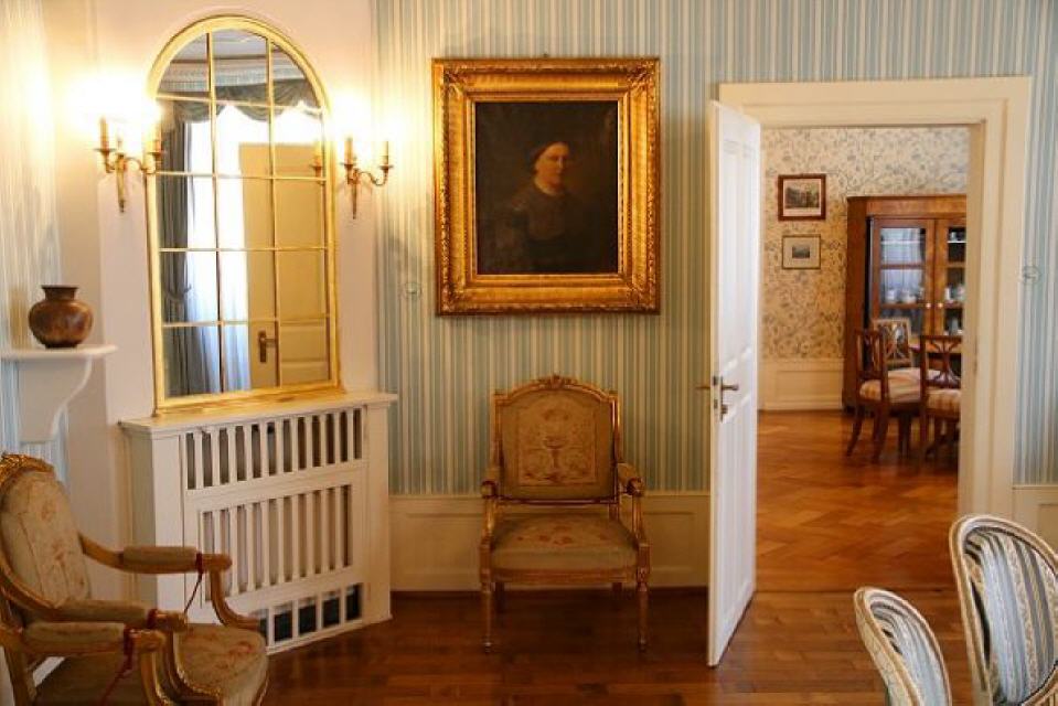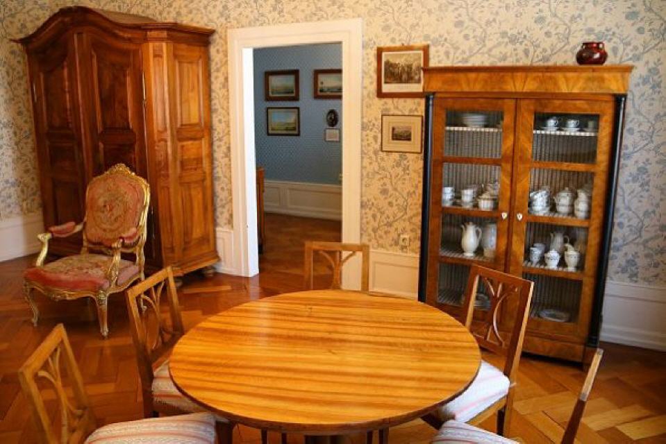 Obergeschoss: Kunst & Wohnkultur. Das Markgräflerland ist auch ein inspiriereendes Künsterland. In der historisch eingerichteten Beletage werden Landschaftsbilder des 19. Jahrhunderts gezeigt, daneben in der Kunstgalerie Meisterwerke der kalssischen Moderne (“Badische Secession”) sowie Bilder und Skulpturen namhafter zeitgenössischer Künstler.