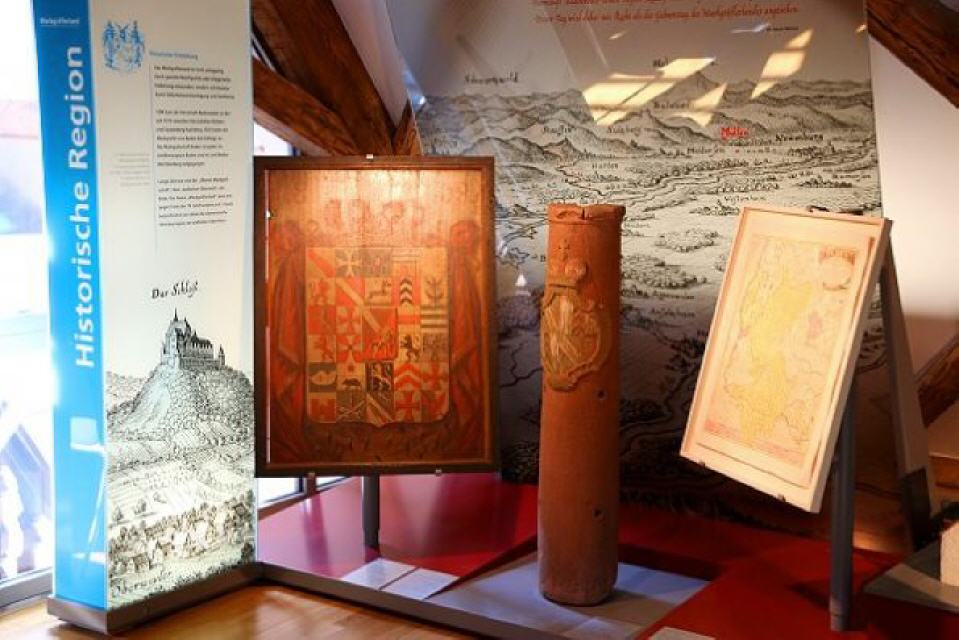 Dachgeschoss: Regionalgeschichte. Die Geschichte des Markgräflerlandes am Rheinknie bei Basel – im ausgehenden Mittelalter aus den drei Herrschaften Badenweiler, Rötteln und Hachberg-Sausenberg entsanden – wird in einer modern gestalteten, erlebnisorientierten Abteilung mit zahlreichen Computer- und Lesestationen erzählt.