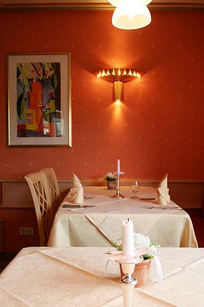 In unserem Restaurant wird Ihnen eine saisonale deutsche Küche mit regionalen Akzenten serviert. Der Küchenchef bietet ständig wechselnde Abendmenüs mit einer reichhaltigen „A la Carte” – Auswahl an. Auf Wunsch inszenieren wir auch ein romantisches Candle-Light-Dinner für Sie. Auf unserer Innenhof-Gartenterrasse servieren wir Ihnen gerne Feines aus Küche und Keller.