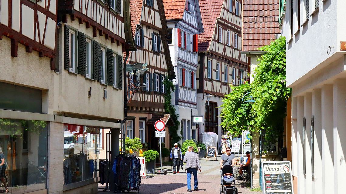 Die Fachwerkbauweise ist typisch für das 15. Jahrhundert, vor allem die Verblattungen (zwei miteinander zu verbindende Balken werden beide so ausgeschnitten, dass sie plan übereinander zu liegen kommen) sowie die starken Geschossvorkragungen. Diese sind auch beim Gebäude Stuttgarter Straße 22 zu sehen (linker Teil des Gebäudes). Wohl seit Beginn des Deutschen Kaiserreiches 1871 gab es in der Stuttgarter Straße 18 die Gaststätte „Zum Deutschen Kaiser“, die bis 1989 bestand. 1990 wurde das Gebäude renoviert und dabei nach alten Befunden die originale Bemalung des Fachwerks in Ocker mit Schmuckstrichen an den Rändern der Gefache wiederhergestellt. Bei Grabungen im Keller des Gebäudes entdeckte man sogenannte Nachgeburtsbestattungen. Vom Mittelalter bis ins 19. Jahrhundert war es ein verbreiteter Brauch, die Plazenta in Töpfen im Keller zu vergraben, um das neugeborene Kind vor bösen Einflüssen zu schützen. Ähnliche Funde sind aus der näheren Umgebung, z.B. aus Sindelfingen, aber auch aus dem Heilbronner und Ludwigsburger Raum bekannt.