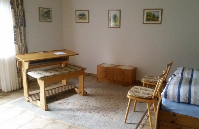 Die Ferienwohnung Sonnenhalde liegt in einem ruhigen Wohngebiet in Dobel, unweit vom schönen Ortskern entfernt. Sie hat eine Wohnfläche von 55 qm und bietet Platz für bis 2 Personen. Die Fewo hat einen eigenen Eingang und ist großzügig ausgestattet. Auf der Terrasse sind Liegestühle, auch besteht die Möglichkeit zum Grillen. Bild antippen!