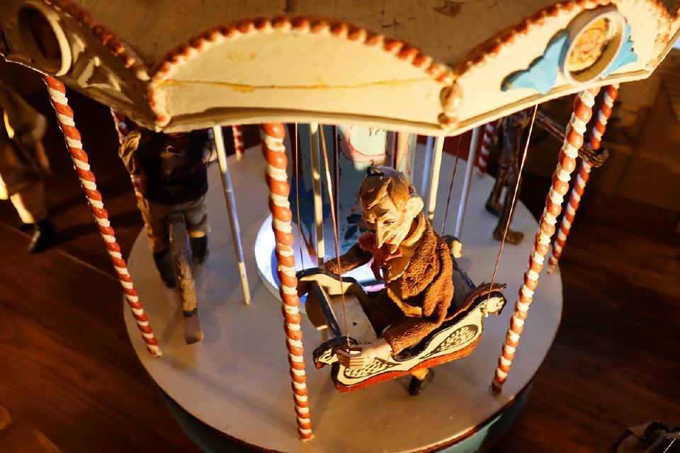 Der Freiburger Kinetiker Dietmar Mahler, künstlerischer Stammgast im Haus Löwenberg und Ausstatter der bedeutendsten Magier der Welt, hat den "Grüß-August", eine Marionettenfigur mechanisch in Szene gesetzt und zum Sprechen gebracht. Weiterhin laden eine raumfüllende Überkopf-Kugelbahn, ein Spiegelkabinett und die Knödelfresser-Orgel zum Schauen, Staunen und Mitmachen ein!
