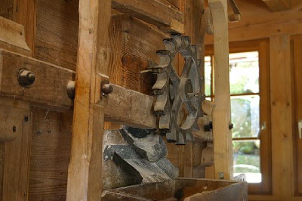 Die Bauernsäge des Gallus-Hofes: Sägewerke und Mühlen produzierten als Familienbetriebe für den Eigenbedarf und im 19. Jahrhundert in Lohnarbeit Mehl oder Schnitzholz. Im Zuwäldertal wurde das Wasserrad der Gallus-Säge von der Familie Lehmann, der Gemeinde und dem Historischen Verein wieder aufgebaut.