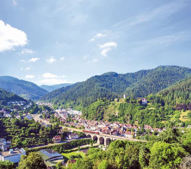 Die schöne Schwarzwaldbahn (schönste Gebirgsbahn Europas) von Hornberg über Triberg nach Villingen (37 Tunnels mit 3 Kehren) kostenlos erleben.