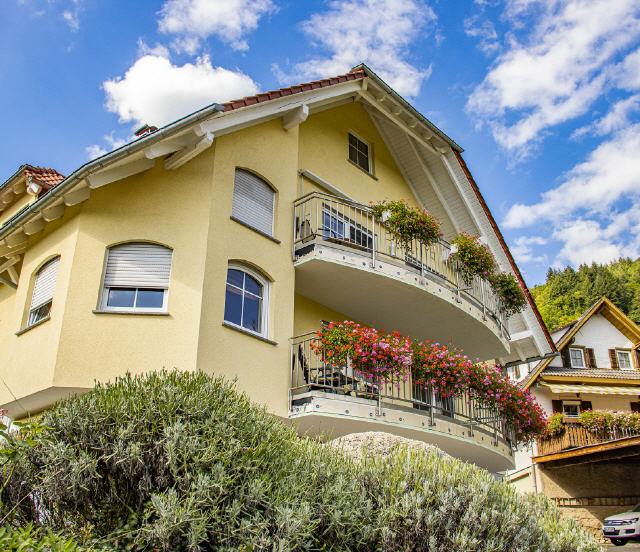- Ferienwohnung 4 Weitblick: Die Ferienwohnung im OG links liegt südöstlich zur Talseite. Vom Balkon (12 qm) hat man einen freien Ausblick ins Renchtal.