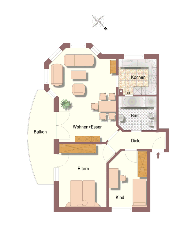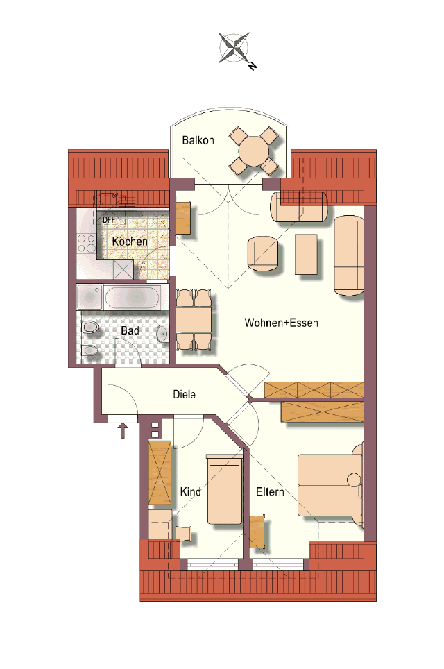 - Maximalbelegung 3 Erwachsene + Kleinkind
