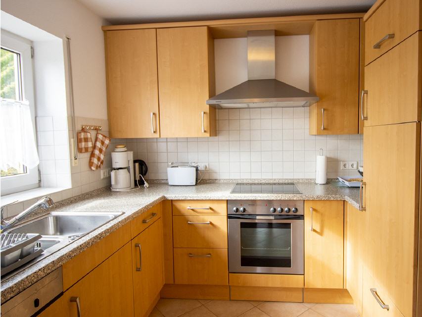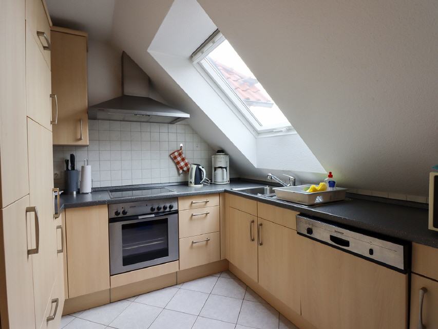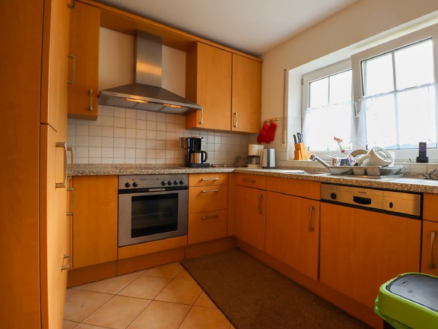 - separate Küche - modern und komplett eingerichtet mit Geschirrspüler, Mikrowelle, Backofen, Kühlschrank mit Gefrierfach