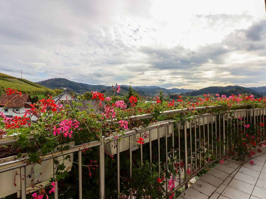 - Ferienwohnung 3 Gartenblick: Die Ferienwohnung befindet sich im EG-rechts. Sie liegt südwestlich zur Gartenseite. Vom Balkon (6 qm) hat man einen freien Ausblick ins Renchtal.