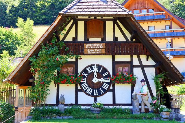 Der Erbauer und Uhrmacher Josef Dold hatte eine Idee. Er baute eine Kuckucksuhr so groß wie ein kleines Schwarzwaldhäuschen. Im Inneren dieser Uhr baute er ein riesiges handgefertigtes Kuckucksuhrenwerk aus Holz ein. Zu jeder vollen und halben Stunde zeigt sich der Kuckuck. Die 1. weltgrößte Kuckucksuhr befindet sich im Schonacher Untertal und wurde von Uhrmacher Josef Dold uns seiner Familie in zweijähriger Bauzeit gefertigt. Ihr Uhrwerk ist 3,60 Meter lang, 3,10 Meter hoch und 1 Meter tief. Ganz aus Holz gefertigt, zeugt sie von größtem handwerklichen Geschick und genausten Berechnungen, die dafür nötig waren. 50 Mal größer als eine gewöhnliche Kuckucksuhr lädt sie Besucher zur Besichtigung in ihr Inneres ein.