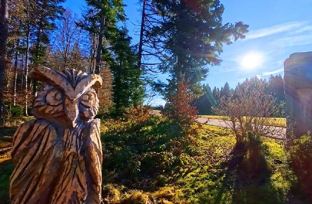 Unmittelbar an der Bundesstraße 31, die von Freiburg über den Hochschwarzwald nach Donaueschingen führt und damit den Breisgau mit dem Bodenseeraum verbindet, liegt bei Hinterzarten eines der größten Moorkomplexe des Schwarzwaldes. Entlang des kurzen Rundwanderweges stehen mehrere Moorwächter-Skulpturen. Der Rundwanderweg beginnt beim Bahnhof Hinterzarten und ist sehr leicht begehbar. Bild antippen!