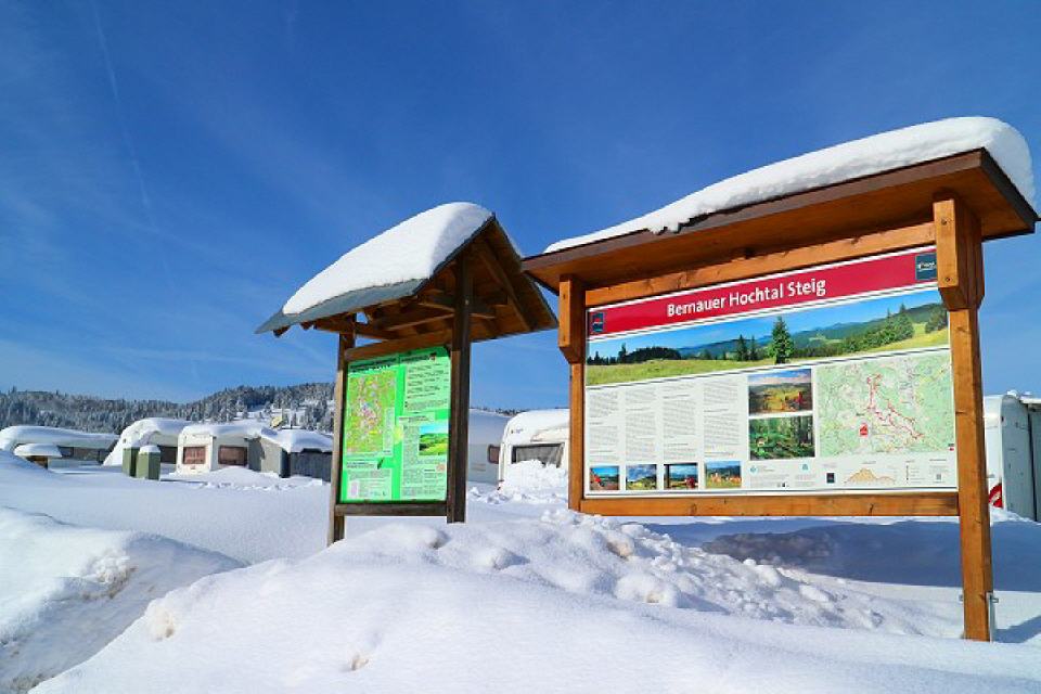 Auf zwei Schneeschuhtrails lässt sich sportlich das winterliche Bernauer Hochtal erkunden. Sie sind 3 und 7,5 Kilometer lang. Beide Touren sind Rundwege.