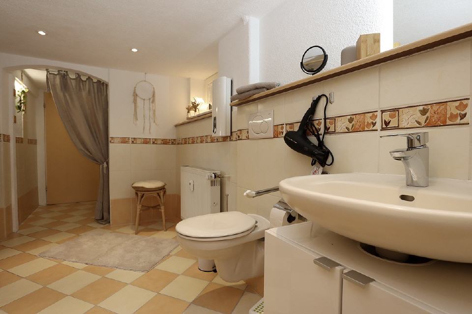 • groß und hell, mit Schlafsofa, TV (Sat), Tisch für 4 Personen