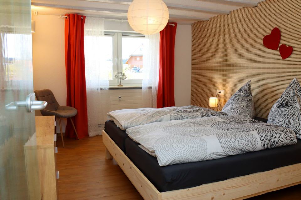 • im modernen Schwarzwaldstil mit Doppelbett, Schrank, Kommode und Sessel