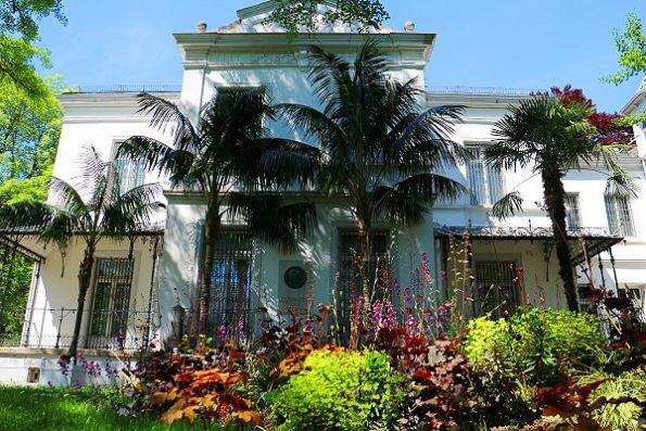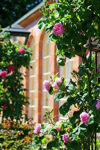 Bereichert wird das Ambiente durch Gebäude wie der großen Villa, die für Ausstellungen genutzt wird, 2 Pavillons, einer Grotte und der Orangerie inmitten des Rosengartens. Ein Seerosen- und ein Ententeich zählen ebenso zu den Sehenswürdigkeiten.