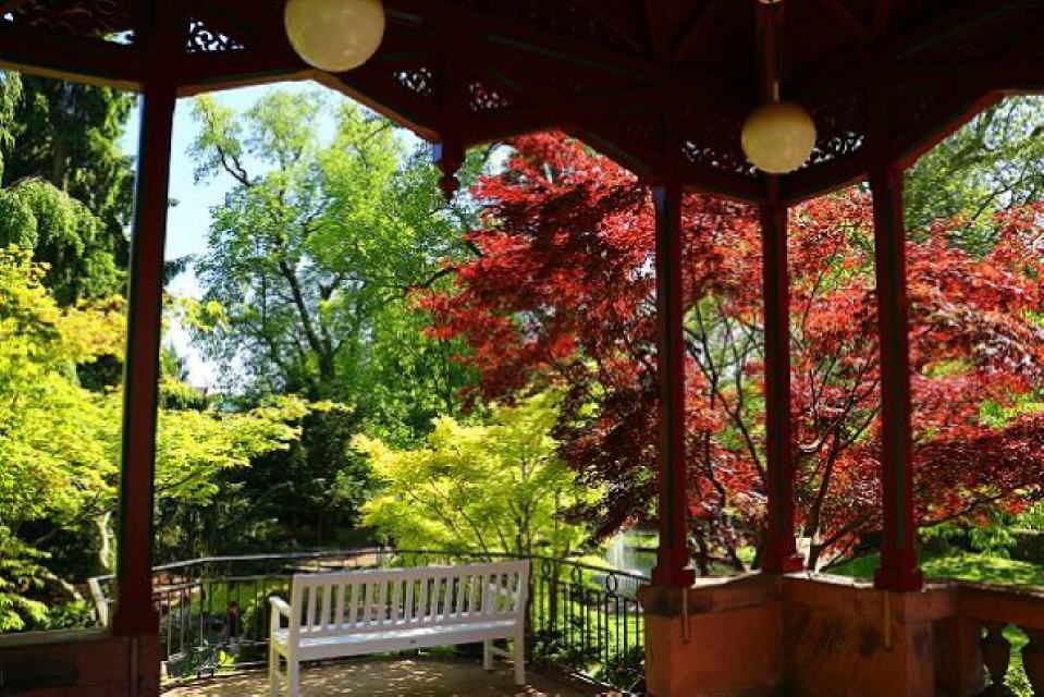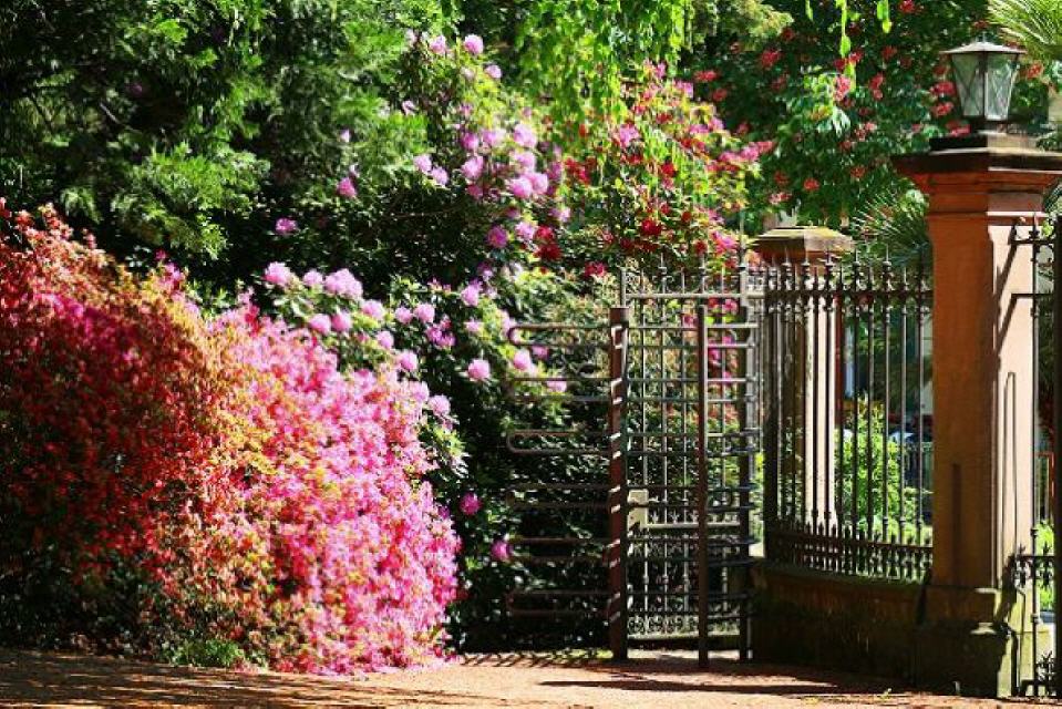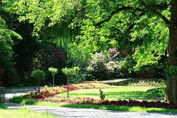 Narzissen und Tulpen im Frühjahr, Rhododendron und Azaleen im Mai, Rosen im Juni, im Sommer bunte Blumenpracht und südliche Atmosphäre unter Palmen, Dahlien und Hortensien im Herbst – das ganze Jahr ist Gartenschau im Stadtpark in Lahr im Schwarzwald.