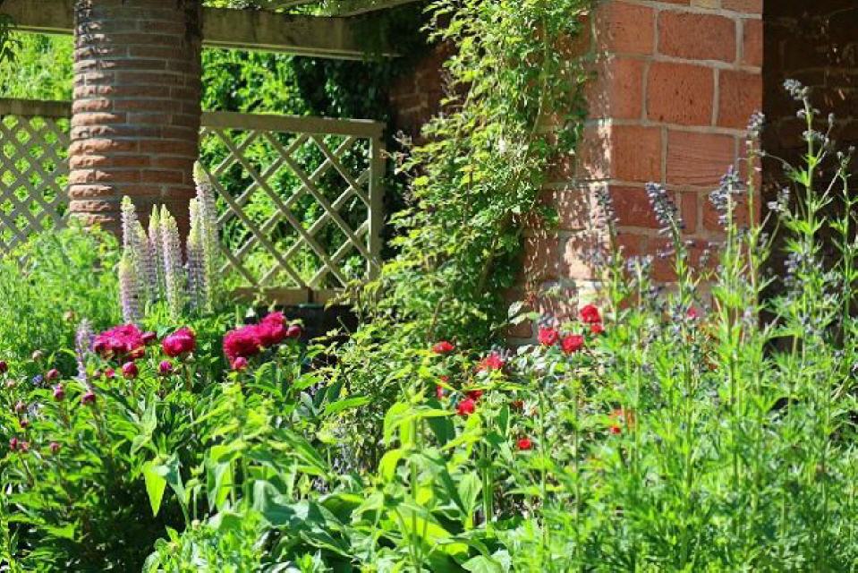 Das Herzstück bildet der 1985 entstandene, geometrisch durch Buchsbaumhecken gegliederte Rosengarten mit über 250 Sorten. Den Rahmen bildet ein großer Altbaumbestand mit zahlreichen Raritäten. Ausgedehnte Rhododendronanlagen zählen ebenso dazu wie die im englischen Stil angelegten Staudenbeete und eine prächtige Hortensienanlage.