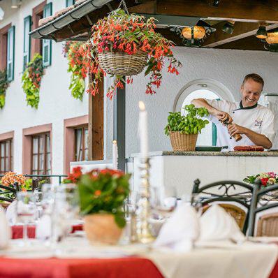 Gerne verwöhnen wir Sie mit regionalen und internationalen Gerichte aus frischen Produkten der Region sowie Wild von unseren Jägern aus heimischer Jagd. Zum Vespern können wir Ihnen Holzofenbrot, Speck, Schinken und hausgebrannte Schnäpse aus eigener Herstellung servieren. Unsere Gasträume eignen sich zur Durchführung von Geschäfts, Vereins- und Familienfeiern.